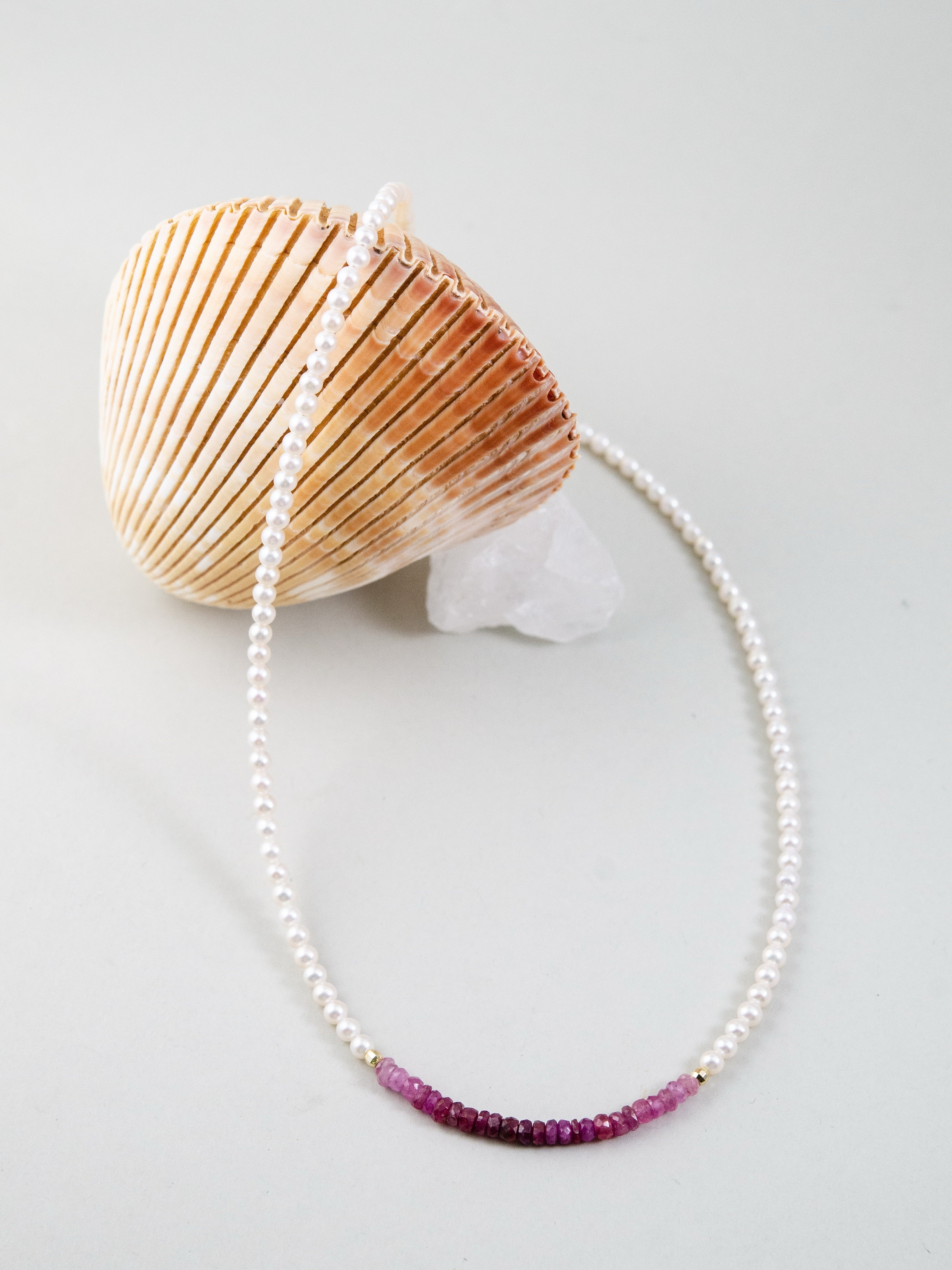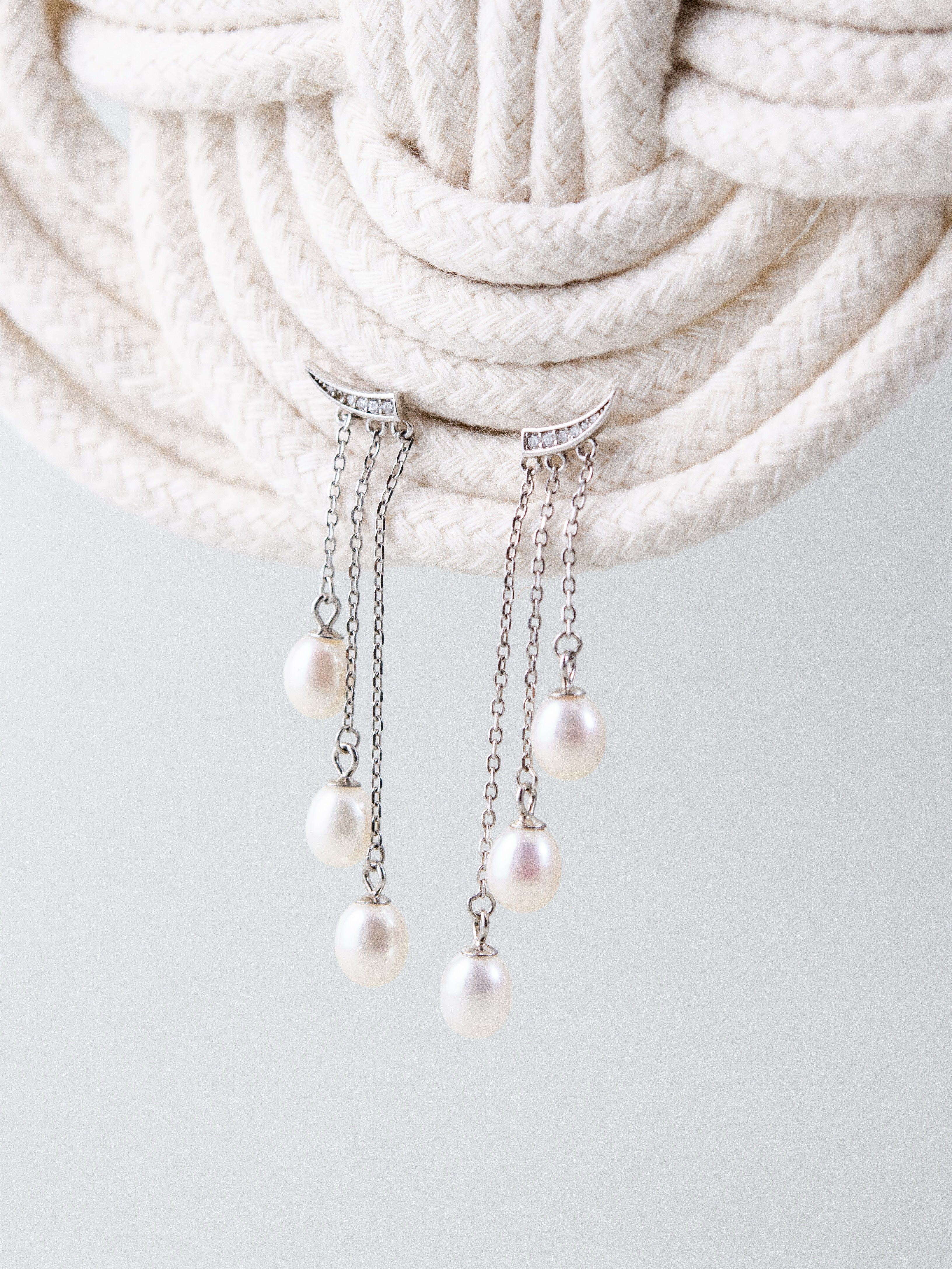 淡水パールの自然な形と艶を活かし、神戸アトリエで一点ずつ仕立てています。